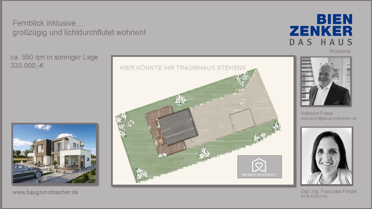 Das perfekte Baugrundstück zu finden, kann eine echte Herausforderung sein. Oft haben wir schon das passende Grundstück zur Hand. Und wenn nicht, unterstütze und begleite ich Sie bei Ihrer Suche.